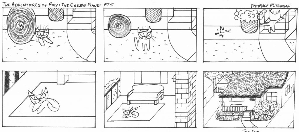 Edition 3 Comics Comics December 4, 2025December 3, 2025Ram Report0 Winter Comic by Zoe Boulton-Dang (#1) “Party Planning” by Yuyan Liu (#5) “The Adventures of Pixy: The Green Planet” by Patience Peterson (#5)